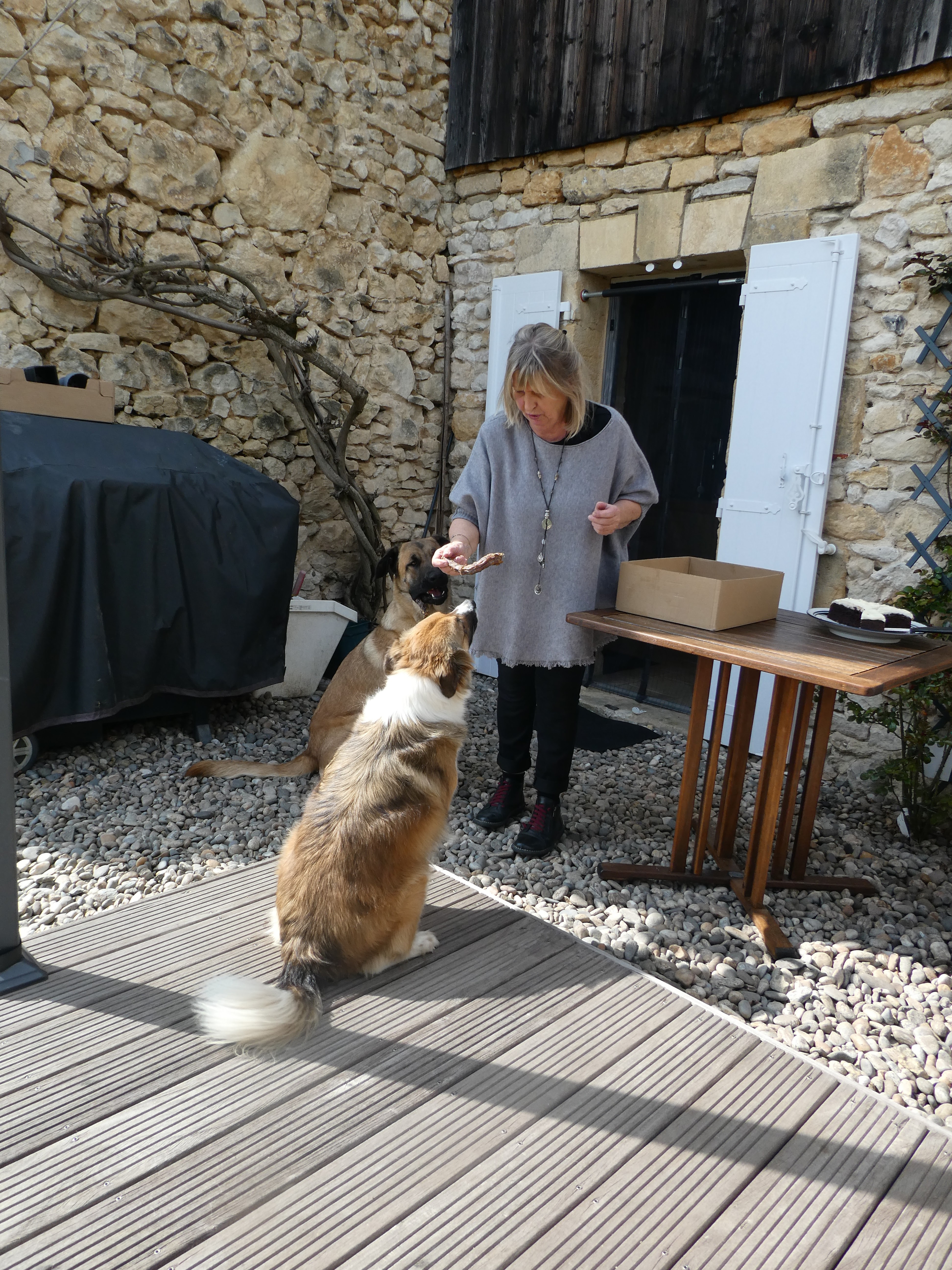 Chez Christine, avec des amis. Un déjeuner au soleil. le printemps arrive – doucement. (ce matin il faisait 8 degrés quand on allait